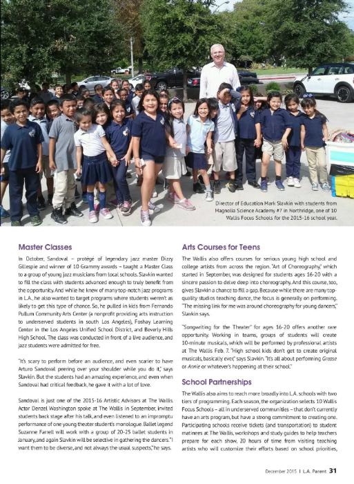 L.A. Parent Magazine's December issue featured MSA-7 Northridge's partnership with the Wallis Annenberg Center for the Performing Arts as a Focus School.