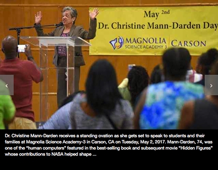“We saw the movie ‘Hidden Figures’ as a school,” said Shandrea Daniel, principal of the school for grades six through 12. Magnolia Public Schools have science, technology, engineering and mathematics-based campuses across Southern California. “We’re very excited and honored to have her here. You can’t beat this.”