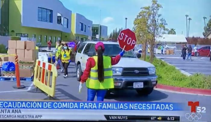 Telemundo 52 coverage of the Emergency Food Assistance event at Magnolia Science Academy-Santa Ana in partnership with Official No One Left Behind and Power of One Foundation on March 28, 2020.Source: Telemundo 52