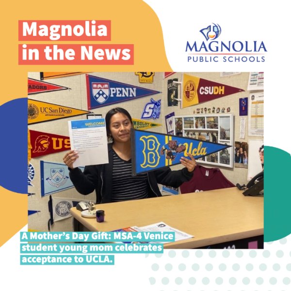 Los Angeles, CA – Celeste Gutierrez has more than one reason to celebrate this Mother’s Day; the 18-year-old young mom of a toddler with special needs and high school recent grad at Magnolia Science Academy-4, Venice, a STEAM-based school located at 11330 West Graham Place in Los Angeles, will join the University of California Los Angeles’s (UCLA) freshman class in fall 2023 as a first-generation student. Although she has yet to declare a major, Celeste has an interest in child development and psychology. She will be the first person in her family to attend college.