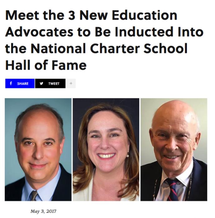 The three will join 32 charter school pioneers and innovators who have been honored as Hall of Fame members over the past decade. They will be recognized at the National Charter Schools Conference next month in Washington, D.C.